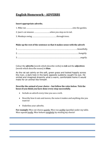 4) on the blank, write the question the adjective or adverb answers. They'll enjoy the familiar worksheet format while learning to analyze the different parts of speech. Fill in the blanks with suitable adverbs of place. Teaching english grammar english worksheets for kids spelling and grammar grammar lessons teaching writing teaching tips spelling rules adverbs worksheet first grade worksheets. An adverb can also be placed away from the verb.
